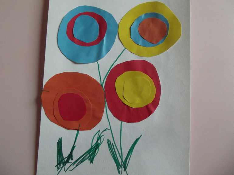 Цветы.Их мы рисовали,делали из пластилина и бумаги...Бесконечное цветочное производство.))