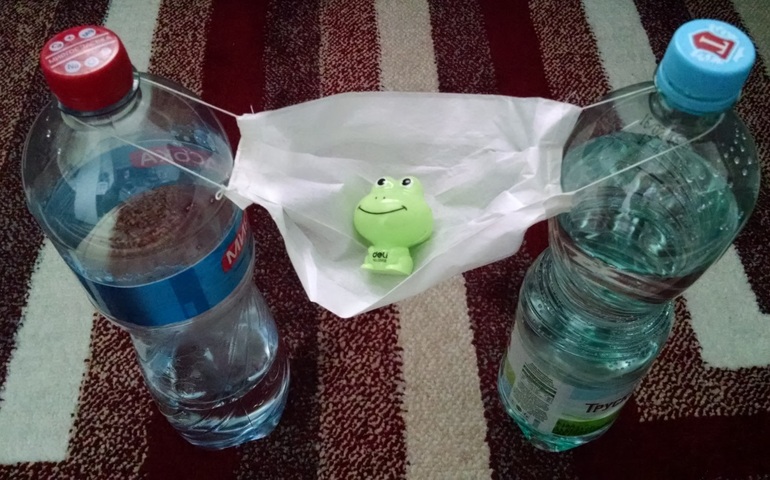 Из маски и 2 бутылок - гамак или качели.