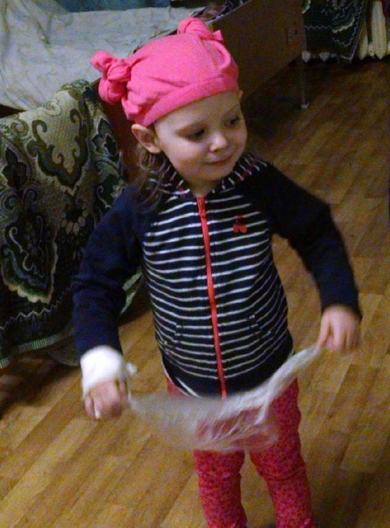 Если накинуть на плечи полотенце, получится ласточка\сова\бабочка. Если замотать ребенка в одеяло, он сразу превращается в гусеничку, которой тут же надо вылупиться.