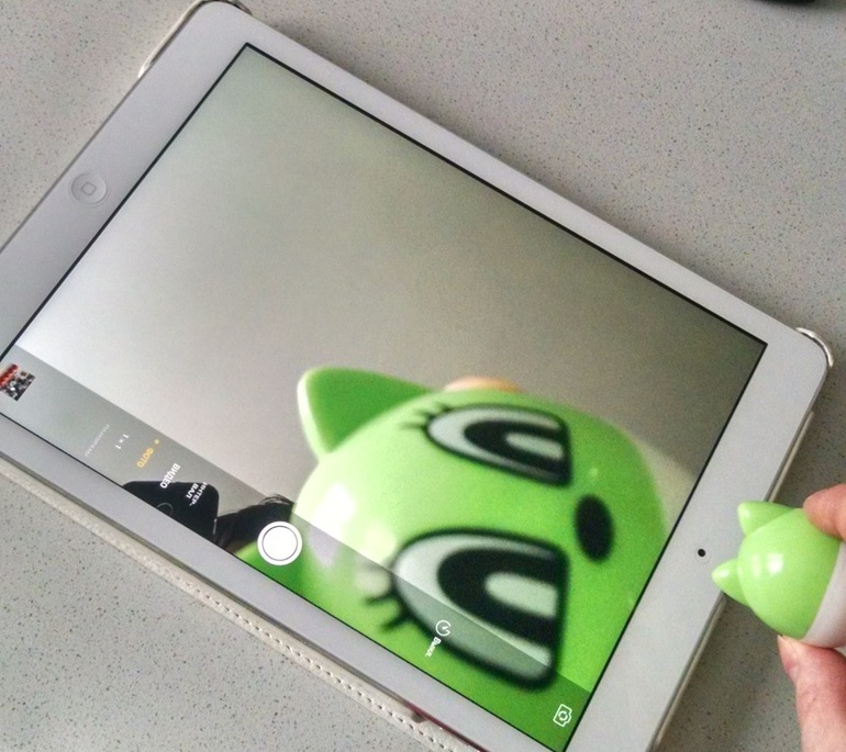 С гаджетами можно играть еще так: включаем камеру для селфи и тычем зайчика\котика прямо в нее так, чтобы не закрыть экран. На экране появляется огромный глазище или носище. Очень занимательно.