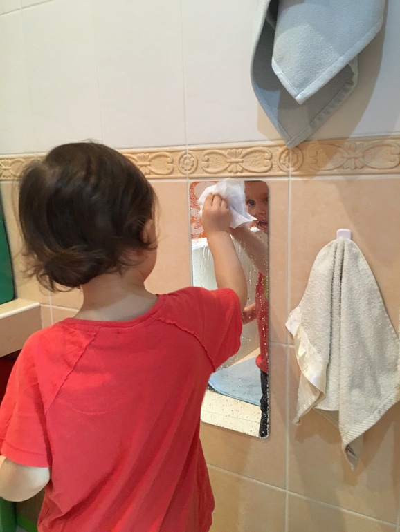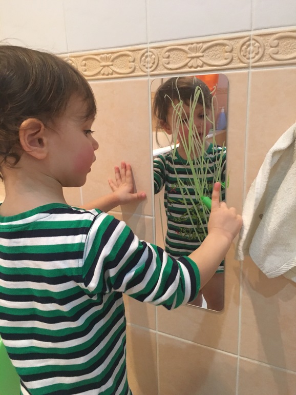 Порисовали на зеркале. Такой новый и неожиданный способ рисования увлек минут на 30.