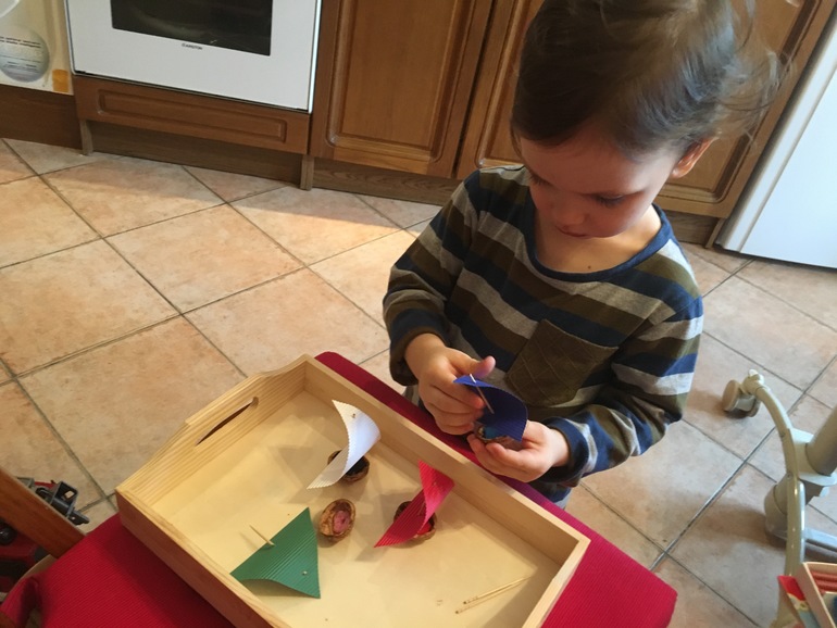 Смастерили кораблики из скорлупы грецкого ореха и запускали их в плаванье.