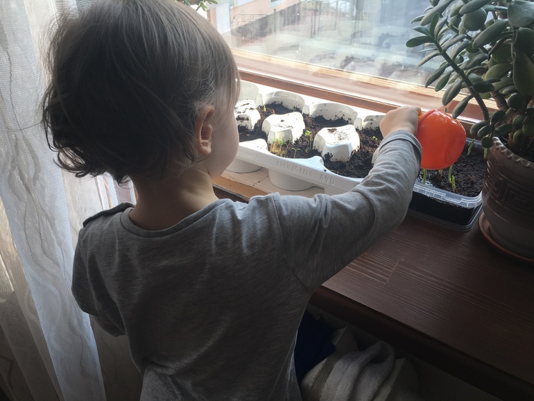 И в завершении нашего насыщенного месяц марта посадили огород на подоконнике. Теперь каждый день его проверяем и поливаем водичкой. И даже уже едим свой лучок.