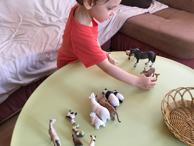 В корзинке с животными перепутались все мамы с детенышами и срочно нужно было помочь деткам найти их мам.