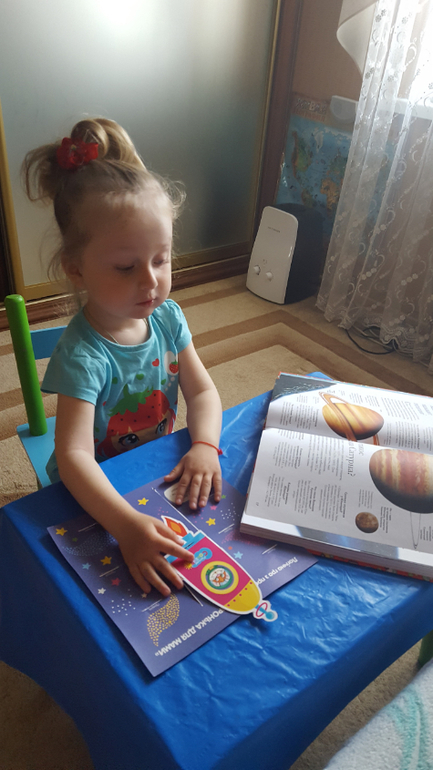 Начали мы наше ознакомление с рассказов и чтения про космос, луну, планеты. И почему-то Полине запала в сердце сразу планета Сатурн. Она задавала такое количество вопросов, что я чувствовала себя ученицей, которая не выучила урок и не знает, что ответить. Пришлось по ночам дочитывать, перечитывать и вообще…развиваться)) Недетские вопросы («Почему у Сатурна есть колечки, а у других планет нет?», «Чем отличаются космос и галактика?» «Когда звезды умирают они куда пропадают?») требовали серьезной подготовки.