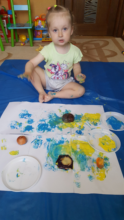 А еще мы рисовали космос штампиками от овощей. Зрелище не для слабонервных, но зато счастья и удовольствия!!!