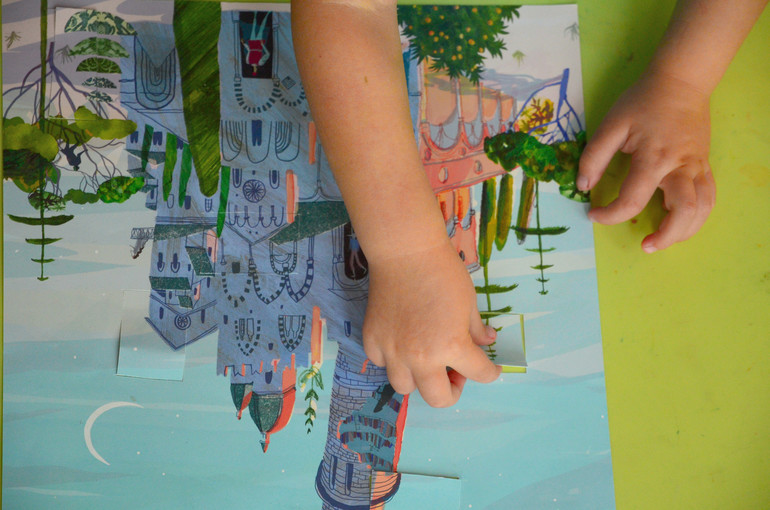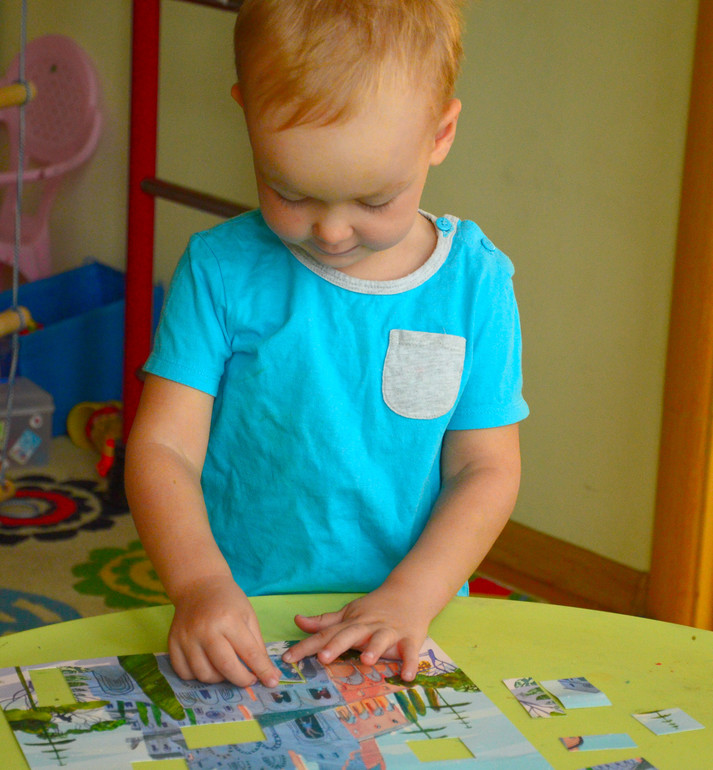 Моим очень нравятся задания, где нужно найти фрагмент на картинке. Начинали так играть где то с полутора лет, с самыми простыми картинками. В основном скачивала из интернета и отдавала в печать, так как цветного принтера у нас нет. Потом начала делать сама. Берёте любую картинку из календаря, рекламного проспекта или отжившей свой век книжки. Мы распотрошили прошлогодний Лабиринтовский календарь. Если бумага тонкая - нужно наклеить на обычный альбомный лист и высушить под прессом ( я под толстыми книгами сушу). Затем канцелярским ножом вырезаете фрагменты, ориентируясь на возраст вашего ребёнка. Задачу упрощает, если фрагменты делать крупные и разных размеров. И всё - играем. Хороших вам игр!