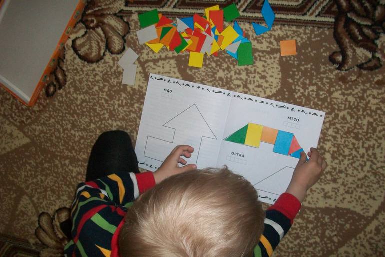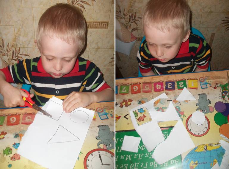 Потом вырезали по линии геометрические фигуры (тоже частично с моей помощью)