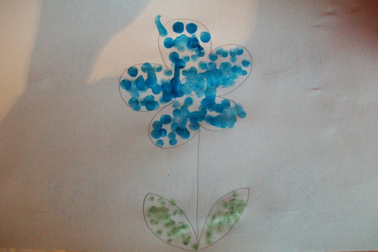 1. Рисовали-разукрашивали красками и ватными палочками цветочек