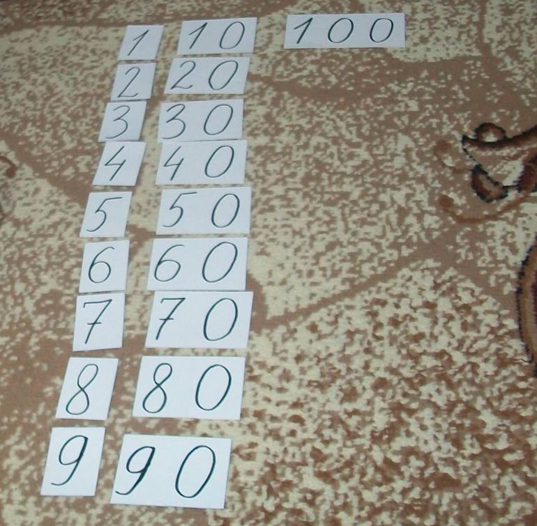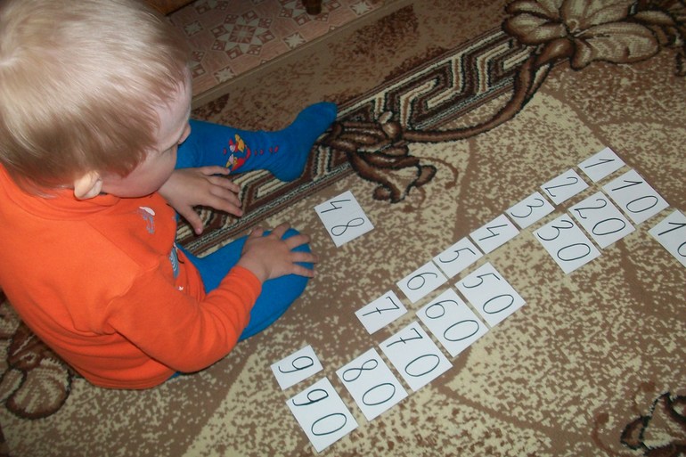Или наоборот: я выложу карточку, а он называет число. Самому пока трудновато, иногда путает десятки с единицами, но ничего, учимся потихоньку. Главное, у него есть желание и интерес. А потом, глядишь, и другие карточки с сотнями сделаю.