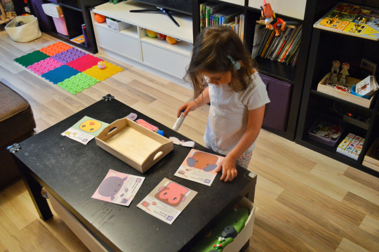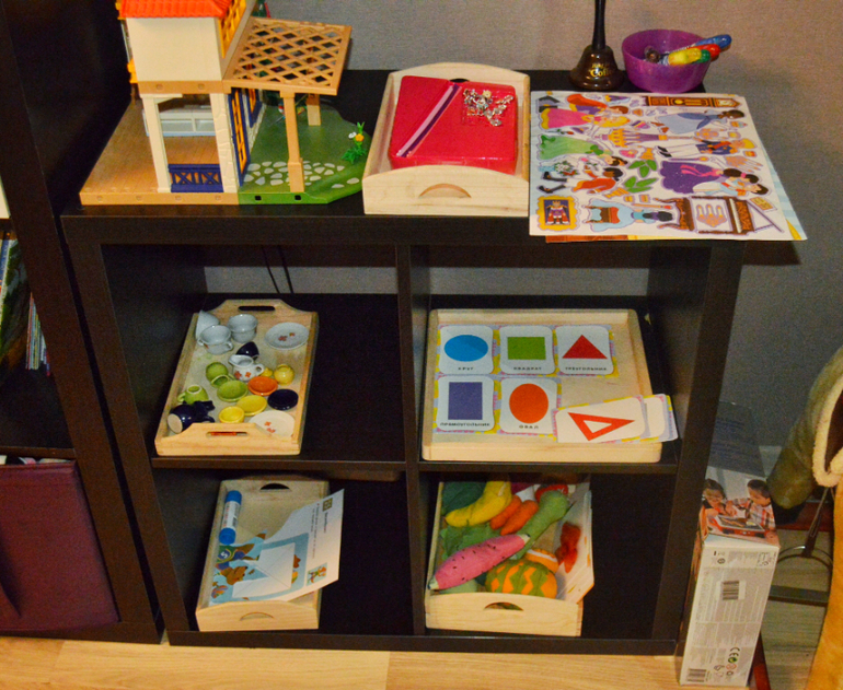 Форма подачи маленьких идей у нас неизменна. Это подносы с простыми занятиями или играми, без лишнего материала. Цель такой подачи в пробуждении интереса к игре, к манипуляции с предметами. Это может быть все, что угодно. Все зависит от конкретных интересов ребёнка в текущем периоде. С трёх лет дочь заинтересовалась буквами, количествами, формами. Стараюсь предлагать ей интересную работу с ними)) кроме подносов Даша уже пару недель не расстаётся с Лего и Плэймобиль. Выстраивает города протяженностью в комнату. Совершенно спокойно может отказаться от прогулки и попросить поиграть дома. Я не настаиваю. Просто озвучиваю ещё раз и уточняю: точно ли мы не идём утром в лес? Точно ли она остаётся дома до обеда? Пару раз оставались дома, и мне так непривычно сидеть на кухне и ничего не делать))))кайфую ,короче говоря.