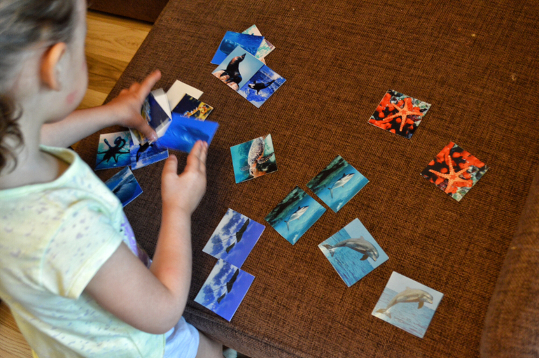 Отличное качество, множество картинок, есть разные варианты игры: начинаем с показа одной карточки, переворачиваем её и спрашиваем что изменилось. Потом стала выкладывать дочке ряды из 5-6 карт. Она смотрит, закрывает глаза, я переворачиваю 2-3 карты, все или ни одной. Она показывает что я перевернула. Игра совершенно не напрягает. Ребёнок всегда просит ещё поиграть. Можно выложить ряд и одну или пару убрать и спросит потом, что пропало.