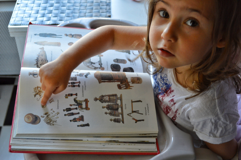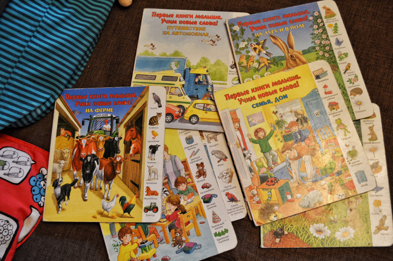 Малышковские гляделки. Даша их снова полюбила за возможность самостоятельно прочитывать слова на полях и искать предметы на картинке. Эти книги есть уже у процентов 90 детей. А, если нет, очень советую приобрести. Адекватная цена и интересное содержание.