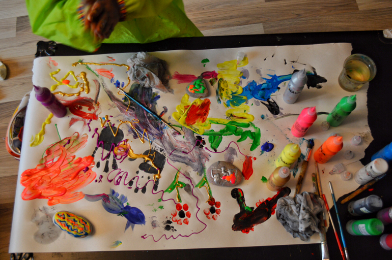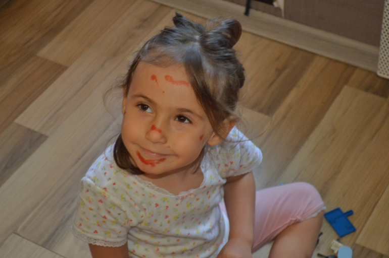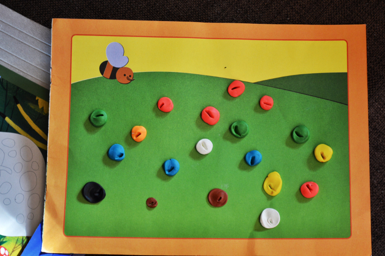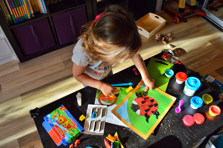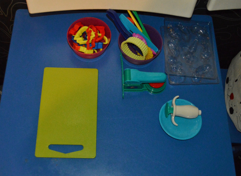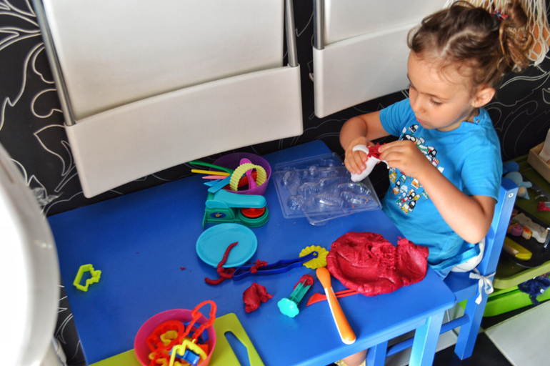 Пластилин постоянно на виду у нас тоже не лежит. Периодически достаю массу с разным набором инструментов. Дочь прекрасно занимается самостоятельно.