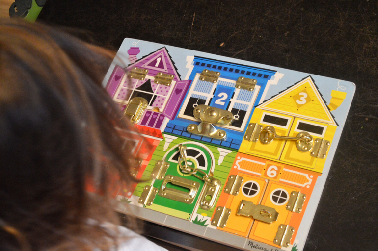Ну я не знаю как может пропасть интерес к замочкам. Наше главное условие: не замылить глаз)) пару раз в месяц-два достаю на недельку. Вместе можем и посчитать, и цвета повспоминать, но только на английском. На русском дочка отказывается со мной этой досточкой заниматься.