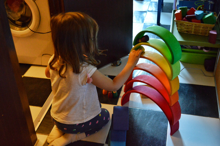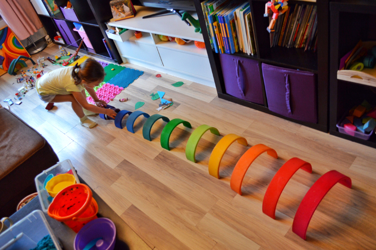 Сейчас появились прекрасные альтернативы немецким дорогим игрушкам. Радугу мы очень любим. Это и тоннель, и дом, и качели, и лестница ...)) простор для фантазии.