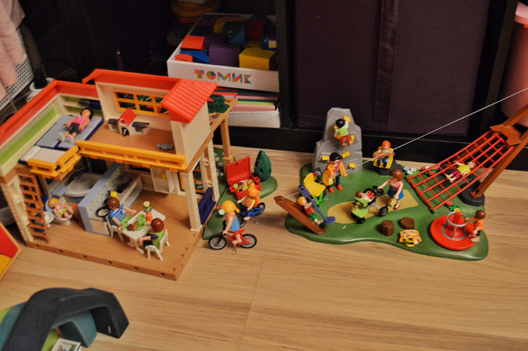 А вот и глобальные постройки из Плэймобиля. Ни разу не пожалела о покупке. Часто пишут, что он похож на Лего. Я думаю, что они совсем разные. Лего надо строить, Плэймобиль-расставлять. Там так много разной мелочевки, деталей, что даже мне охота с ним поиграть.