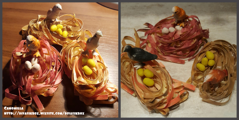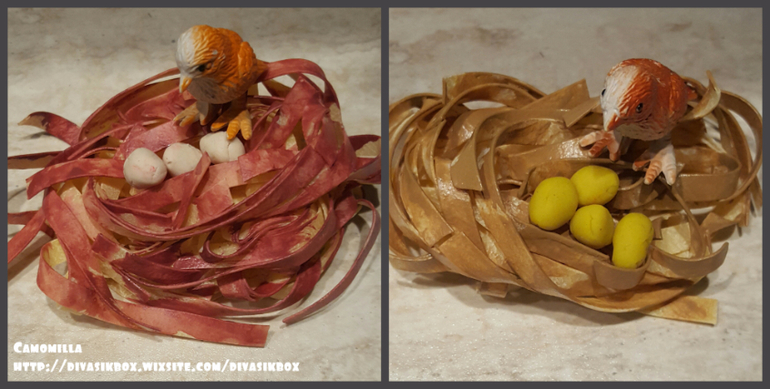 Из шпагата реалистичные гнезда получаются, и дочка сама справится, я еще лепила яички с вылупившимися цыплятами) а со старшим из пластилина лепили ласточкино гнездо, видели в деревне, интересно было бы из веток попробовать сплести, но я в своих силах не уверена