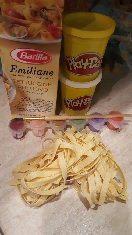 Т.к. я приверженец визуально-тактильного развития, то решила рассказать я о птичках и их гнездах на примере....макарон)) Все очень просто: понадобятся феттуччине (макароны-гнезда), акриловая краска, тесто или пластилин для лепки яиц и Ваша фантазия).