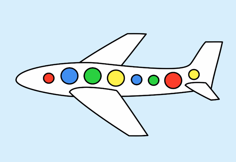 - Выложите пуговицы( бусинки или вырезанные круги из картона) на круги-окна самолета. Подбирайте подходящие по цвету и величине.
