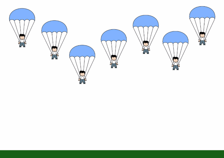 - Возьмите карандаши и проведите прямые линии от парашютистов до земли.