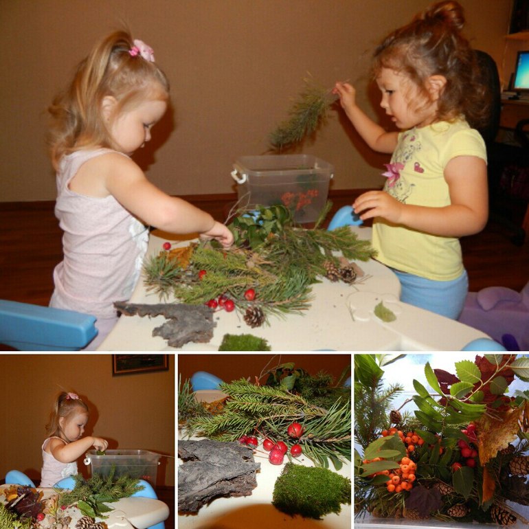 Развитие детей третьего года жизниХочу поделиться нашей тематической неделькой "Лес"! Для начала мы создали свой маленький волшебный лес в виде сенсорной коробочки (веточки сосны, ели, шишки, кора, мох, листья, ягоды рябины, дикие яблочки, камушки..). Очень долго рассматривали, трогали, нюхали - одним словом изучали...