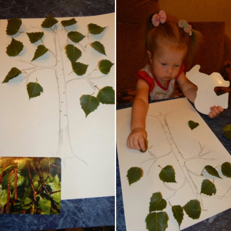 Папа поучаствовал в процессе и нарисовал березу, а Славушка раскладывала листочки, получилось очень здорово!
