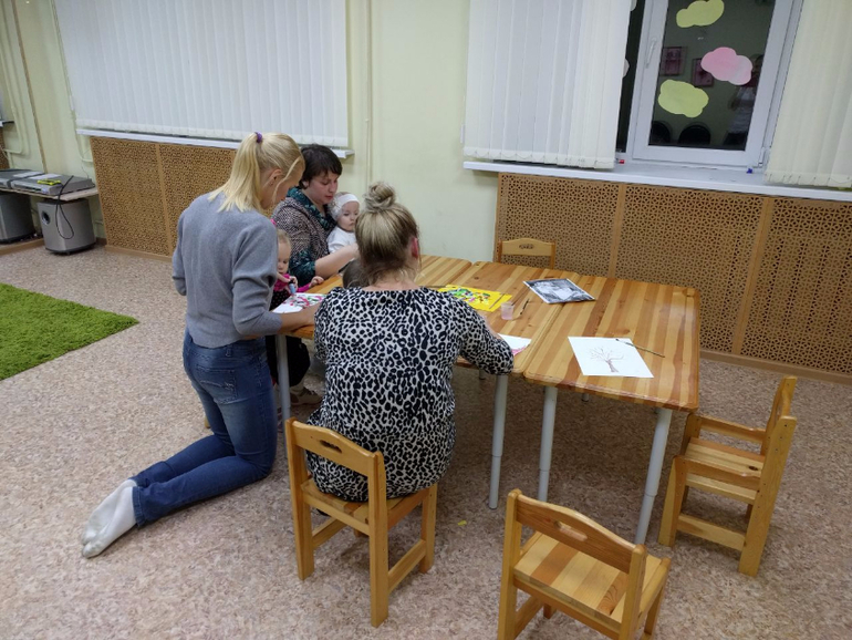 Пока все малыши спокойно сидят у мам на ручках и с увлечением участвуют в творческом процессе...