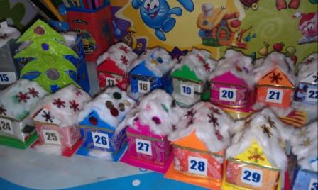 или домик с открывающимися окошками, где в каждой ячейке лежат шоколадки, записки с пожеланиями (в религиозных семьях - с выдержками из Писания) или маленькие подарочки.