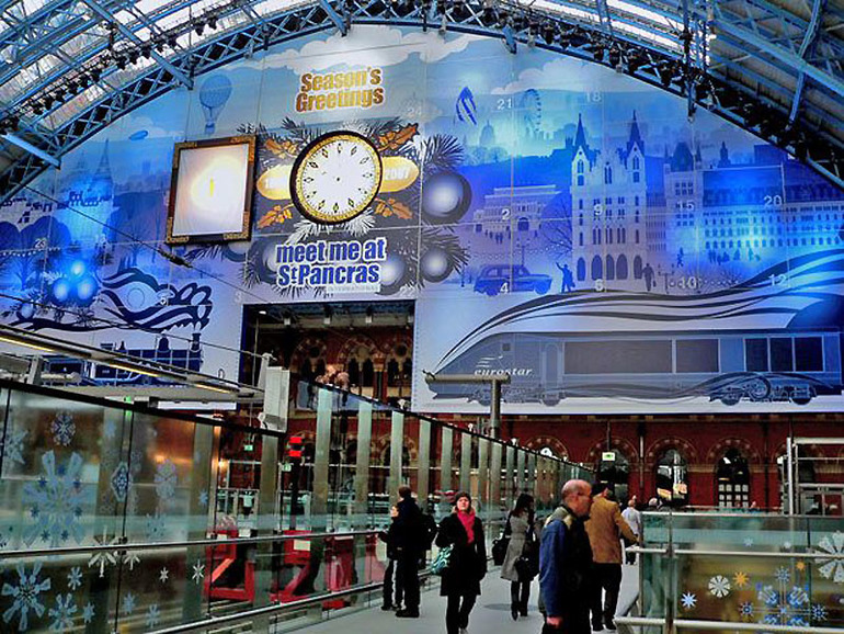 Самый большой адвент-календарь 71 на 23 метра был построен в Лондоне на станции St Pancras в честь ее реконструкции в декабре 2007 года. Он внесен в книгу рекордов Гиннеса.