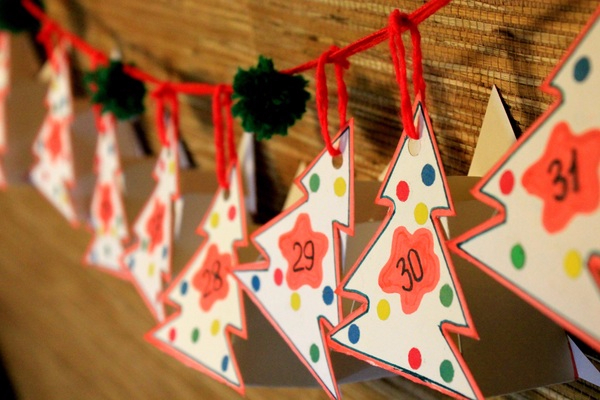 Адвент-календарь можно сделать в виде новогодней гирлянды.