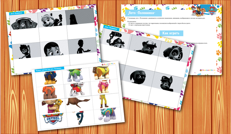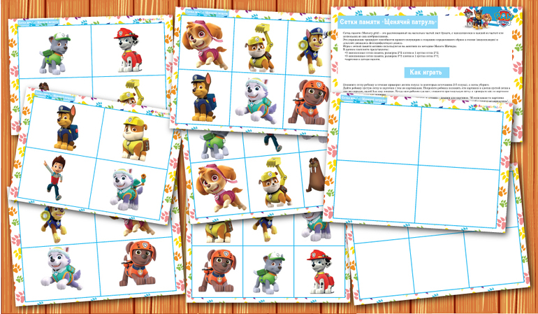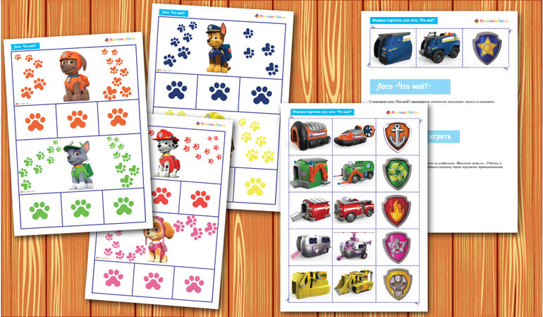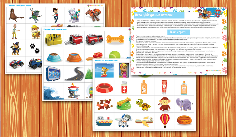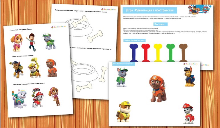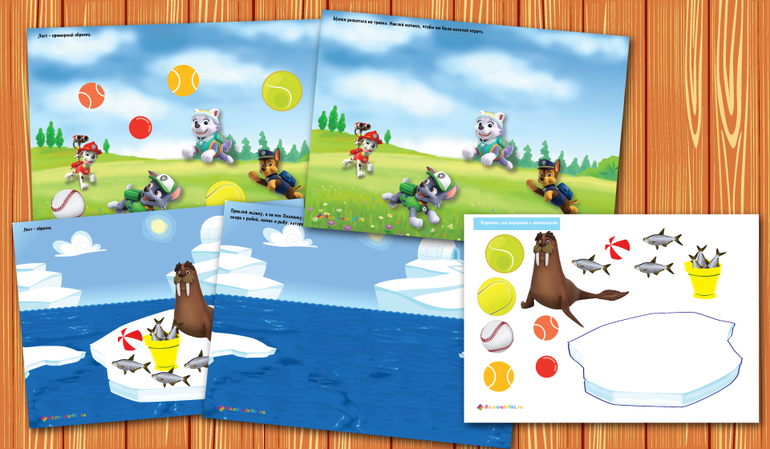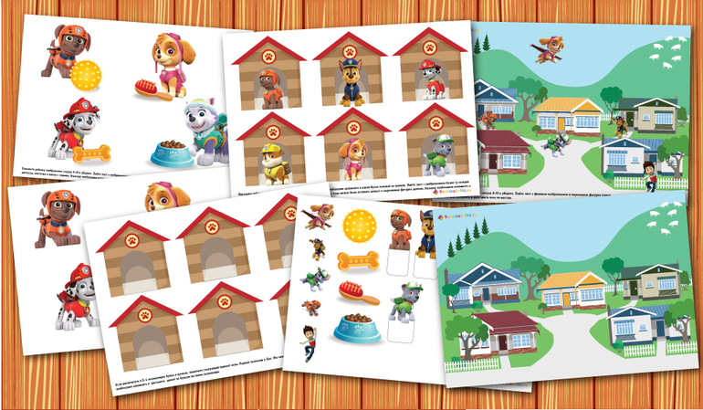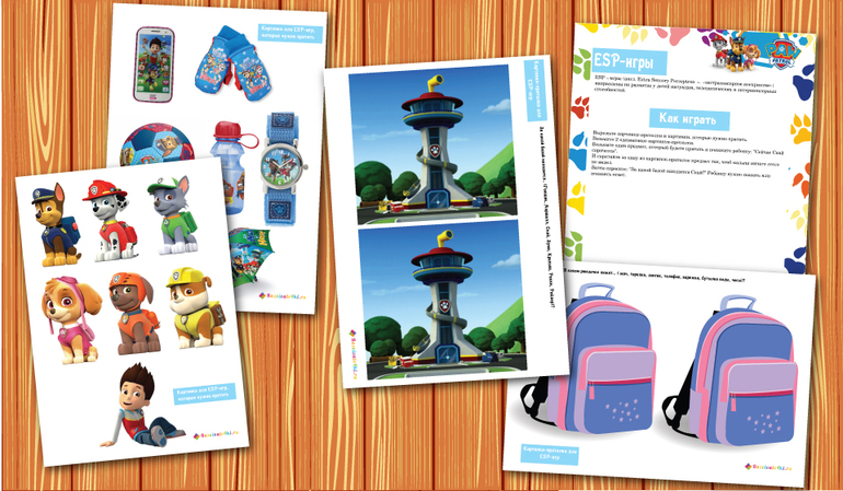 Игры для развития интуиции. Ребенку нужно угадать, в каком рюкзачке лежит предмет и кто из щенков уже на базе.