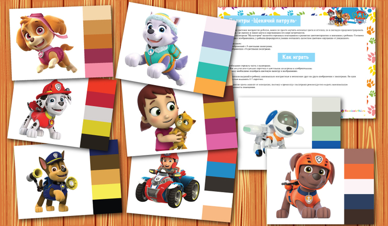 16 палитр с героями и кадрами из мультфильма "Щенячий патруль"