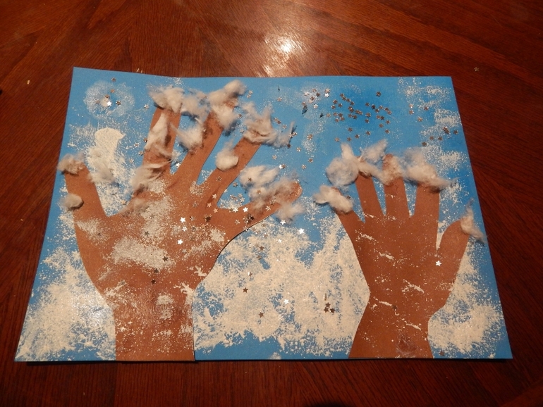Послушали и потанцевали под песенку "Белые снежинки", посмотрели мультфильм "Зимняя сказка" про ежика и медвежонка. Погуляли на улице: ловили снежинки и рассматривали их, обсудили, что такое снежинка, что у всех снежинок разные узоры, что сугроб - это множество маленьких снежинок..