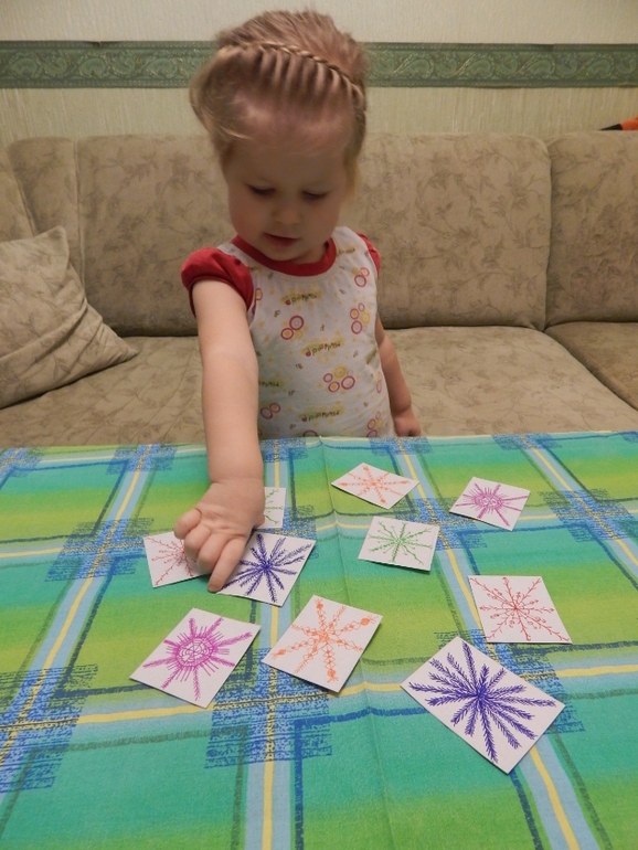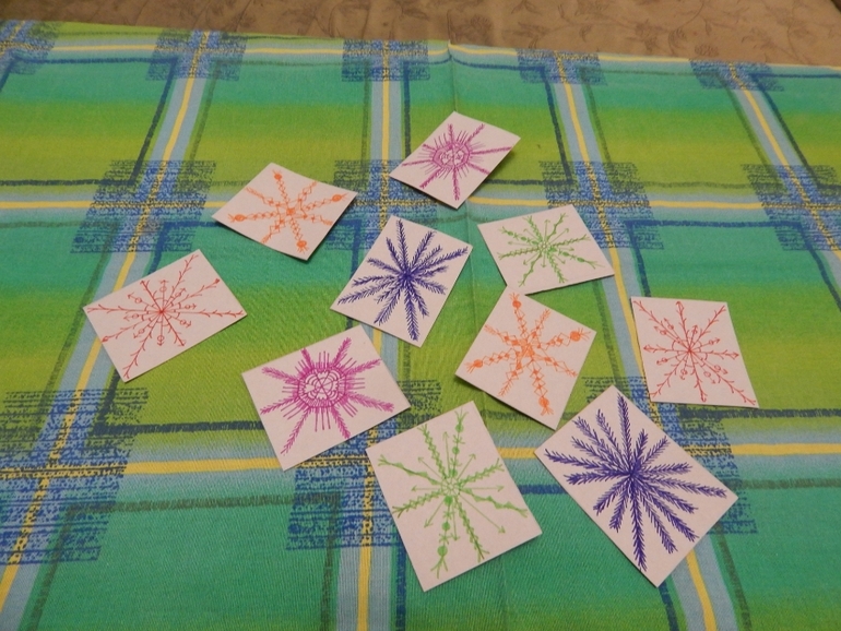 Искали пары одинаковых снежинок:![]()