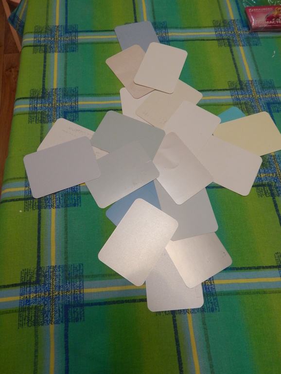 Выкладывали снежинку из карточек (повторяли оттенки):![]()