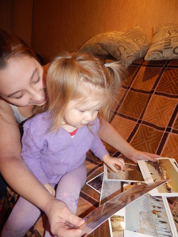 Затем Слава вместе с двоюродной сестренкой Варей посмотрели картины известных художников на тему зимы из комплекта![]()