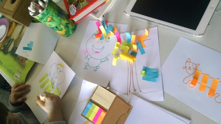 Это не только приятное совместное творчество, но и хорошее упражненение на развитие мелкой моторики, я пока помогала отклеивать стикеры, свою моторику наулучшалась донельзя:)