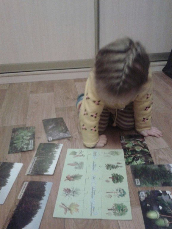 Попытались собрать пазл с деревьями и их листочками, первый раз делали вместе, затем с моими подсказками Слава сама. Достала карточки , показала эти деревья на карточках. На третий раз Слава собрала сама пазл и назвала все деревья на карточках, моя умничка♥♥♥