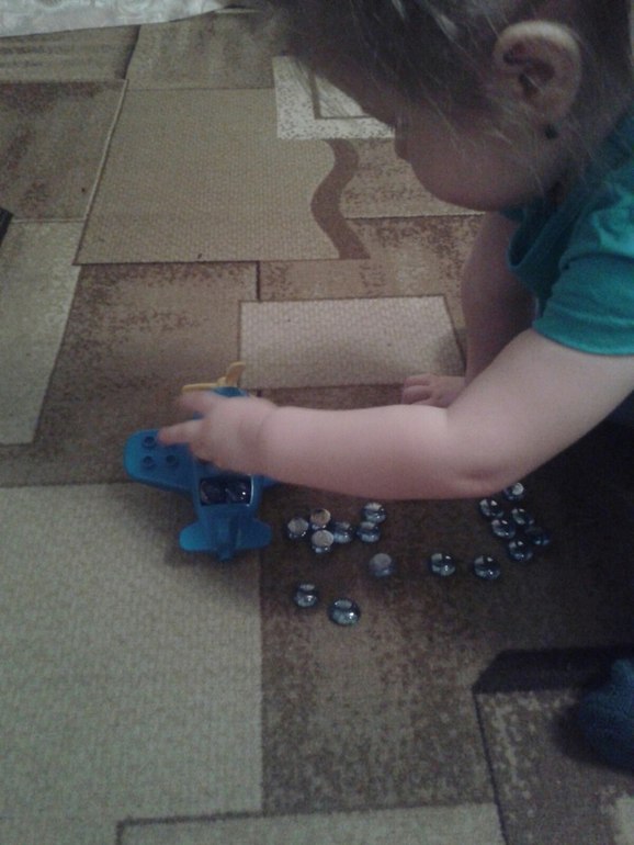 Развивали моторику- играли с камушками синего цвета. Строили из них речку, снеговиков, перевозили на голубом самолете. .