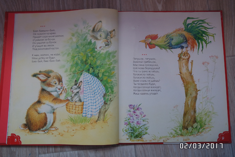 Потешки. Много потешек, которых нет в других книгах. А те потешки, которые повторяются , отличаются великолепными иллюстрациями.