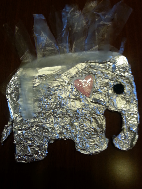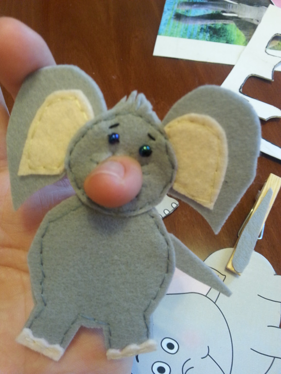 Ой, слоник что-то потерял, что же. Конечно, хвостик. Нацепляли прищепку на слоника.