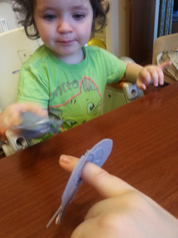 Рассказала, что слоны приветствуют друг друга, переплетая хоботы. Сшила из фетра пальчиковую игрушку, но Лизок пока не оценила, пальчик просовывать не хочет. Хотя в другие игрушки играет с удовольствием. Потом привыкнет, надеюсь. Здоровались.
