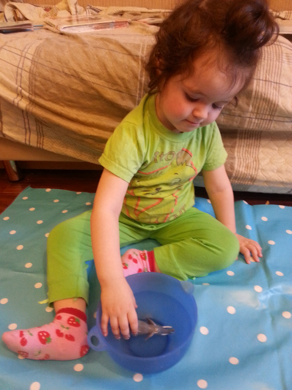 Доченька, конечно, не угадала (т.к. мы пока мало говорим), получила фигурку слона и карточку.
