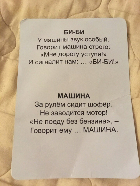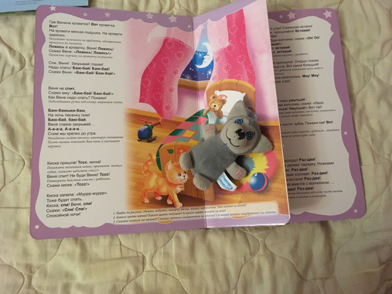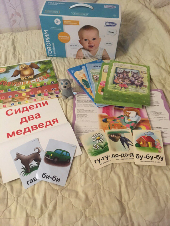 Все о развивающих игрушках, пособиях и книгах (обзоры, рекомендации,хвастики, ссылки)Девочки, как и обещала, следущий обзор наборов Умница. Расскажу про "Говорим с пелёнок". Набор 0+ и, соответсвенно направлен на развитие речи. А, эта тема, последнее время, стала очень актуальной. Все чаще, детки выходят в речь после 3-х лет, причины тому могут разные, о них я писала в предыдущий постах. Я по-этому и выбрала этот набор, не хочу потом по логопедам бегать. В него входят множество книжек и карточек. Первый этап это "листалки". Книжки интересного формата, которые легко перелистывать и такое перелистывание нравится детям) проверено на сыне и детях подруг) в этих "листалках" разные потешки, считалки, пестушки, в наборе их 18шт. На обороте каждой листалки есть "игры манипуляции" это массажики, пальчиковые гимнастики и т.д. Как у нас в детстве было "сорока-сорока", рассказываем потешку, при этом делаем гимнастику, загибаем пальчики, водим пальцем по ладошке. С помощью таких игр развиваем моторику, что в свою очередь связано с развитием речи. Мы до сих пор смотрим листалки, хотя этот этап давно прошли. Некоторые из листалок его любимые, например: "ладушки", когда начинаю рассказывать, сын хлопает в ладоши. "Ути-ути, полетели..." Мирослав машет руками. Самостоятельно он начал это делать в 10 мес. Следущий этап-это карточки "бормоталки". Вот это вещь, девочки. Короткие рифмовки с упором на слоги. Их 18 шт. Они созданы для того, что бы спровоцировать ребёнка говорить. Ведь, часто такое бывает, что малыш все понимает, показывает пальчиком, но не говорит. Выглядит примерно так: "МУ-МУ-МУ Крепко маму обниму", некоторе время, вы читаете этот стишок, а потом читаете наоборот. "Крепко маму обниму, МУ-МУ..." и делаете паузу, ребёнок по инерции говорит "Му". В год, сын повторял за мной несколько слогов, именно во время прочтения карточек, заканчивал за меня предложение. Дальше этап "подражалок", 20 шт. это короткие стишки, с упором на слова, или звукоподражательные слова, На фото есть стишок про мячик Бах-бах. Суть такая же, некоторое время мы читаем стишок, после читаем его наоборот, делая паузу перед последним словом, что бы спровоцировать ребёнка закончить предложение, но уже словом. Дальше идут книжки-повторялки 8 шт, для прочтения рассказов с многократным повторением слов. Например: "Укладываем Веню спать и говорим, Спи, Веня, Баю-бай, баю-бай". Сами повторяем несколько раз и просим малыша повторить. Забыла, Веня-это волчонок) маленькая игрушка, которая одевается на пальчик и проводит игры) Последний этап, это книжки-говорилки, их 7 шт. Я забыла про них, на фото их нету, вспомнила, когда уже сына уложила. Это книжки, до того, что бы речь ребёнка стала развёрнутой, с помощью прилагательных. Занимаюсь с сыном с 3 мес, Мирослав очень любит листалки, если раньше просто смотрел, теперь сам листает и бормочет себе что-то под нос, "читает". С бормоталками и пожражалками мы играем по-своему. Я просто кладу эту кучу, Мирослав в ней роется, выбирает нужную, даёт мне, и я ее читаю. За раз он может прослушать 20 карточек, но последовательность он выбирает сам. Хотя, в дневниках занятий, рекомендуют показывать 2 карточки в день, в течении 3-х дней. Самый большой прорыв в речи, я увидела в год. Сын знает больше 15 слов, в основном это слова и слоги из карточек. Но в год ещё рано говорить о развитой речи. Расскажу про свою п