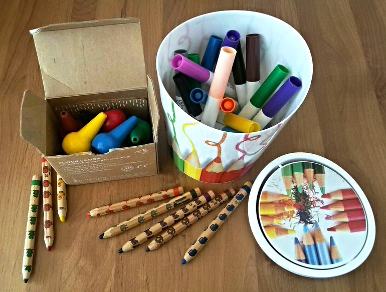 Голубые глазки зорко следят за мамиными манипуляциями. Ну что там? Всё? Давай, давай обратно и вон ту маленькую голубенькую не забудь. Цап! Ловкие пальчики схватили свое добро и понесли осваивать. До мамы доносятся только звуки скатывающихся со стола фломастеров. Ну и ладно! Главное ребенок счастлив и занят!