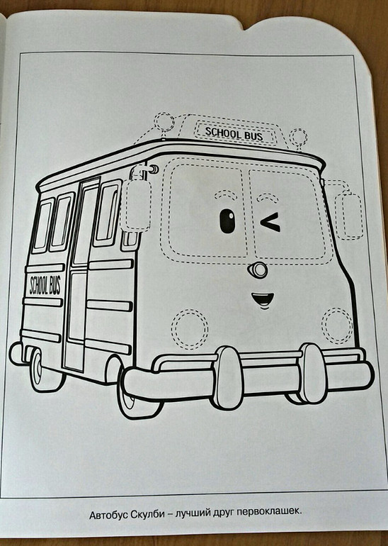 Эта еще дочкина раскраска, тоже затерянная в обилии печатной продукции. Старшая любит робокаров, но практически равнодушна с рисованию и раскрашиванию. Может снизойти иногда, если что-то найдет. Здесь нужно дорисовать рисунок, обводя по пунктирным линиям. Естественно двухлетка этого делать не будет, поэтому калякаем не напрягаясь, благо все машинки нарисованы отдельно и крупно.