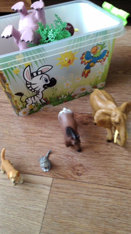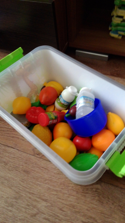 5. Из игрушек... тут совсем дело плохо, лучшие игрушки посудка, больничка, продукты старшей сестры, а ещё фигурки животных. Из всей коробки обожает змею, может по пол дня с ней бегать и шипеть.