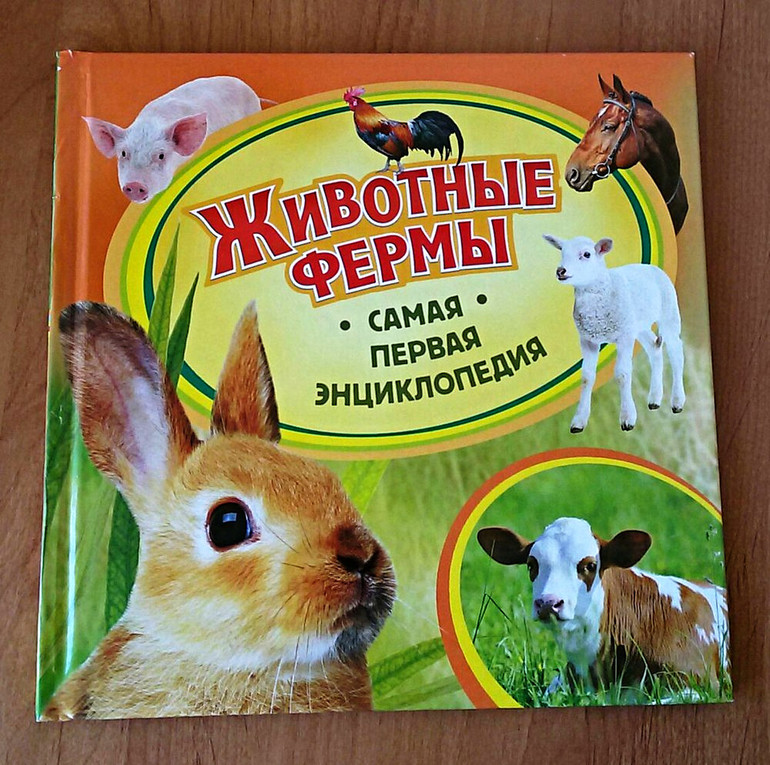 Не скажу, что эта энциклопедия пользовалась у нас безумным успехом, но и просто так она не простаивала. Небольшая книга квадратного формата содержит различные фотографии сельскохозяйственных животных. Все изображения крупные и узнаваемые, сопровождаются интересной информацией о каждом виде. Текста не очень много, с двухлетним сыном мы только недавно стали его читать. В год мы просто рассматривали картинки, тыкали пальчиком и называли животных. В три года дочка с удовольствием слушала о животных, у нее была целая куча различных вопросов, а я узнала кое-что новое. Оказывается: