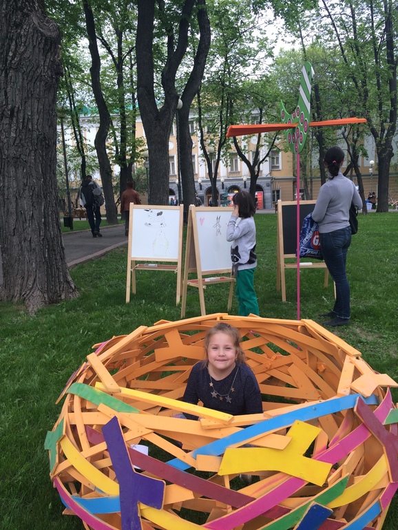 Наигравшись, мы пошли на МК "Лунница" - Эльфик слепила потрясающее украшение из полимерной глины. Как выпрошу поносить - добавлю фото